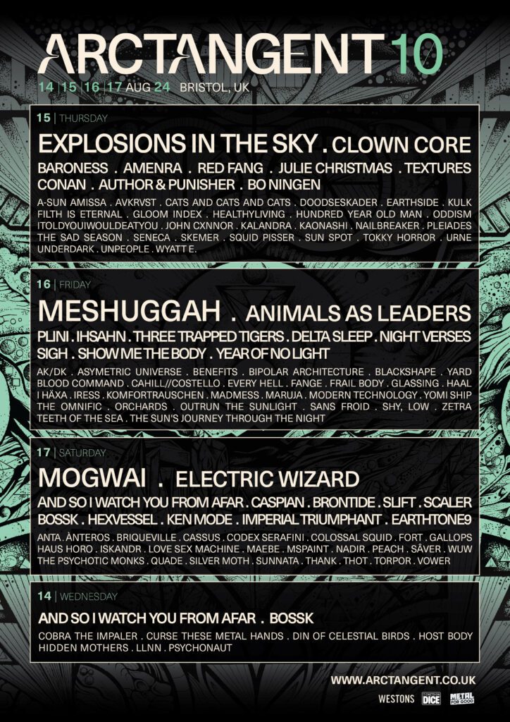 From August 14th to 17th, ArcTanGent is set to deliver the most vibrant and engaging festival of the year. With a stacked lineup including influential bands like Mogwai, Animals As Leaders, Red Fang, Meshuggah, and the ethereal Explosions in the Sky, festival-goers have plenty to look forward to. Not to mention, the long-awaited Brontide reunion which adds so much excitement for the long-standing fans. Attendees can also enjoy a variety of amenities, such as glamping options, a diverse selection of food traders, and local breweries. Plus, each night concludes with the festival’s famous silent disco, an experience that continues to draw crowds year after year.