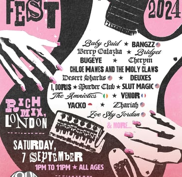 Bands announced so far include The Amniotics, Baby Said, Bangzz, and many more, with additional acts to be announced soon. In addition to the music, the festival will feature talks from organizations like Safe Gigs for Women and Bloody Good Period.