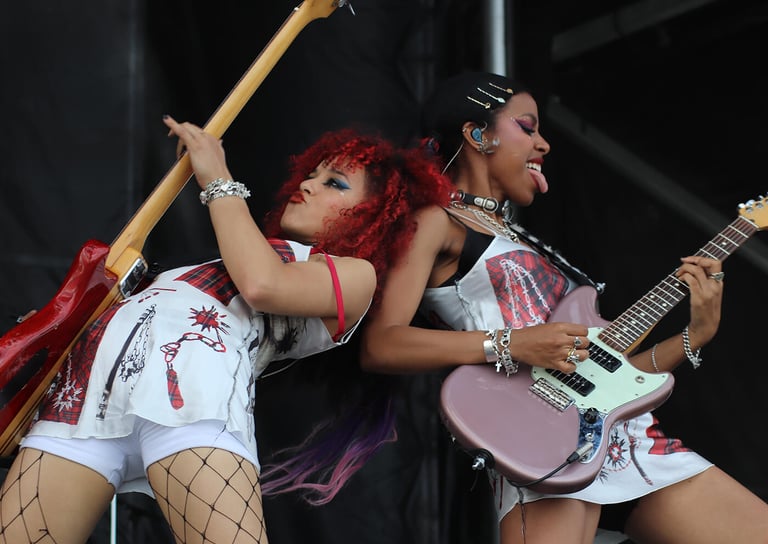 In this same spirit, Amira Elfeky pushes back against labels, humorously owning the “girly metal” tag critics threw at her, proving that music doesn’t need to fit anyone else’s rules but your own. The Pretty Wild similarly reshape the scene by rejecting predefined categories, showing that bold authenticity can create new spaces in a resistant industry. Meanwhile, bands like Nova Twins and ALT BLK ERA are rewriting the blueprint altogether. Nova Twins fuse punk, grime, and heavy riffs into a fierce, politically charged sound that demands Black women’s visibility in spaces that have often excluded them. At the same time, ALT BLK ERA mix metal, rap, and Afrofuturism into a genre-defying, theatrical storm—two sisters creating music that refuses every box the industry tries to impose.